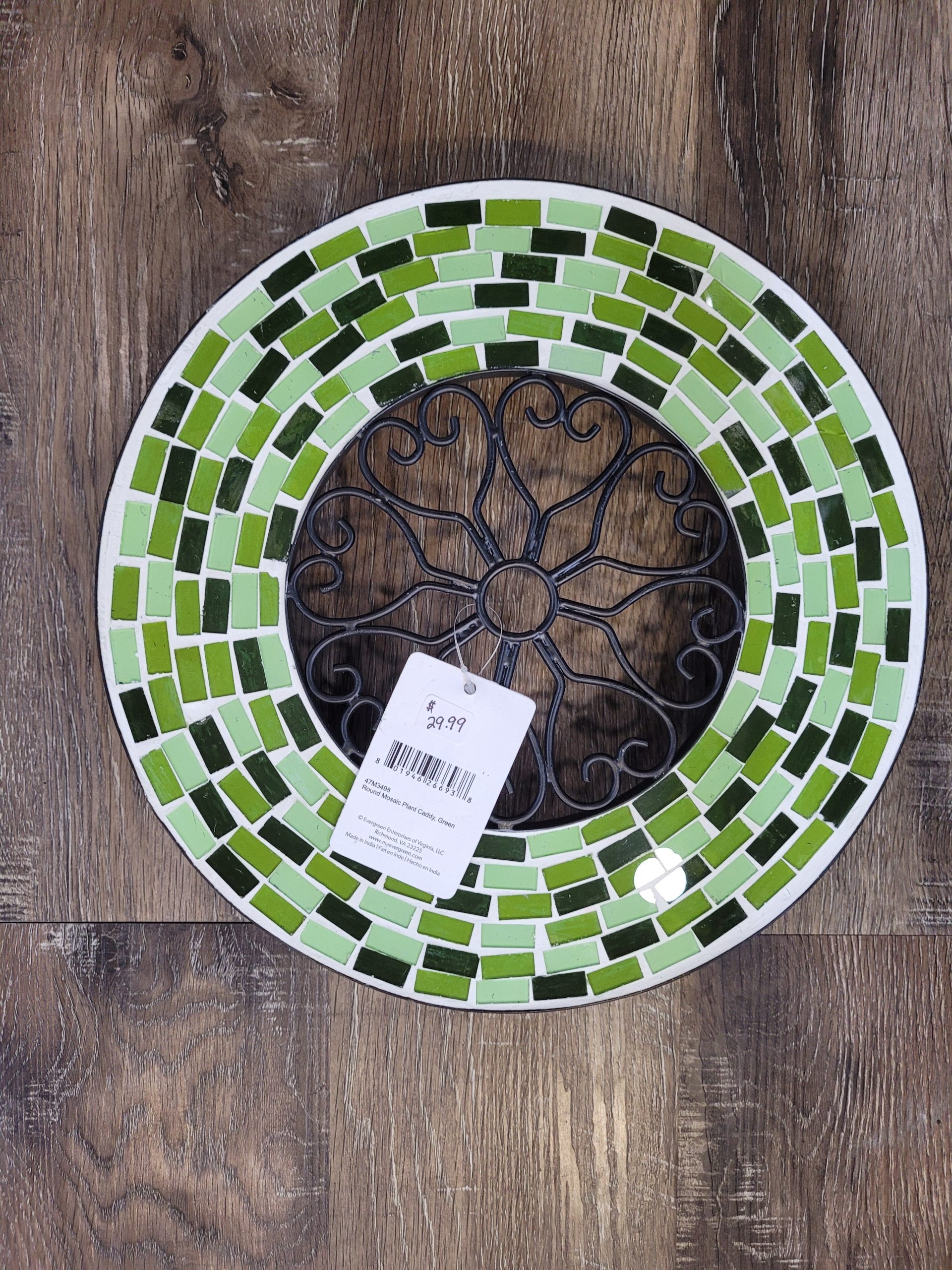 Round Mosiac Plant Caddy Green